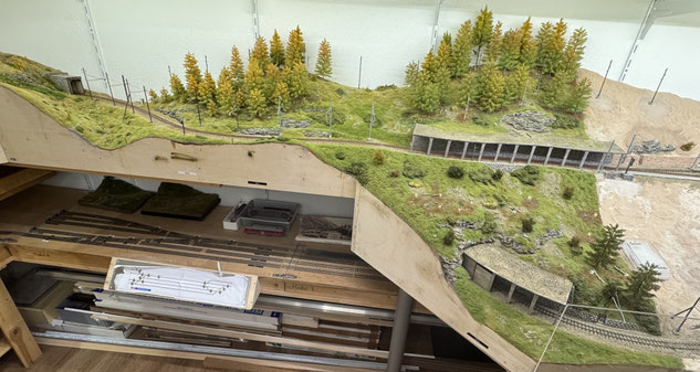 Beim Pozzo del Drago, neben dem kleinen See, fehlten die Mauern entlang der Schienen und mussten ergänzt werden. Schließlich wurden Grasfasern für eine herbstliche Stimmung aufgetragen. Die